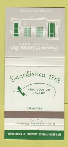 Matchbook Cover Francis Seidel Funeral Home Reading Pa 30 Strike Ebay